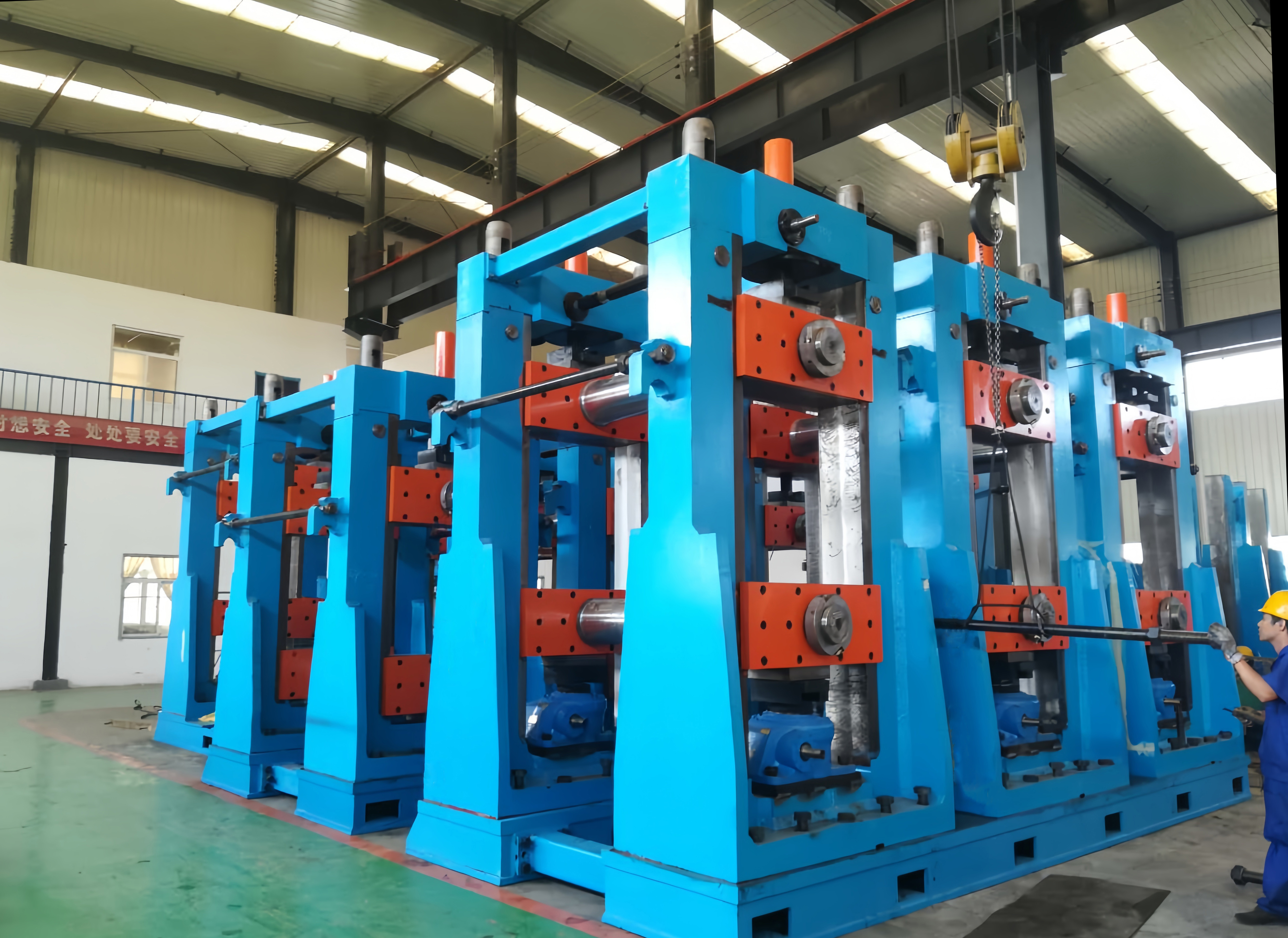 軋輥和輥墊 開卷機(jī)和矯平機(jī) 剪切和對焊機(jī) 活套 固態(tài)高頻焊機(jī) 飛鋸 精矯直機(jī) 水壓測試機(jī) 自動碼垛機(jī) 縱剪生產(chǎn)線 高頻直縫焊管設(shè)備